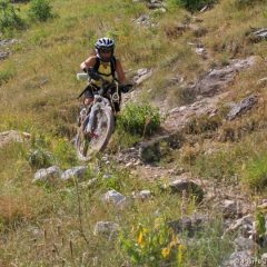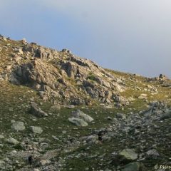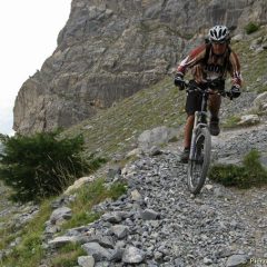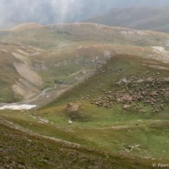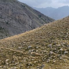 - Tous les bergers ne sont pas obtus et agressifs, certains font même du VTT. C’était le cas du jeune en face sud du col du Sautron. Comme le sentier passait au milieu de son troupeau, à moins que ce ne soit le contraire, il nous a fait une démo de rabattage par sifflements modulés, à plusieurs centaines de mètres du dit troupeau. Vraiment bluffant ! En plus des conseils sur la descente à venir et l’attitude à prendre en cas de confrontation avec un patou mécontent.