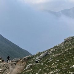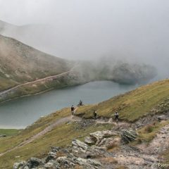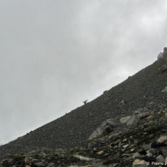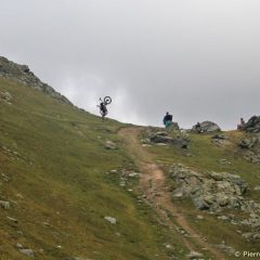 - La deuxième partie de la descente sur le lac Visaisa puis sur Saretto est un vrai challenge technique. D’abord en blocs et amas de cailloux instables, puis en pure glisse et trajectoires fuyantes lorsque la terre revient, nos mains et nos bras s’en souviennent encore.