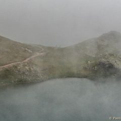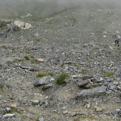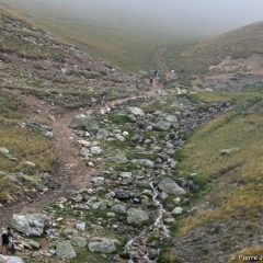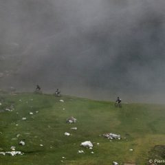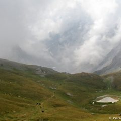La stabilisation de la situation la veille permettait donc un peu plus de décontraction sur ce plan, même si la brume épaisse du col de Larche faisait encore douter un instant Shostag et Claude, a qui je jetais en réponse à leurs interrogations : « juste de simples brumes matinales… du style la Turbie en plein été !« . Et puis au moins, il ne faisait pas trop chaud.