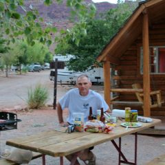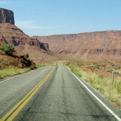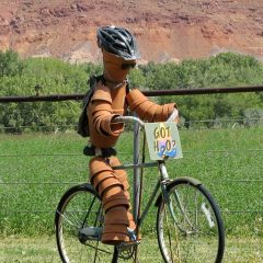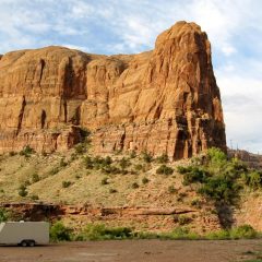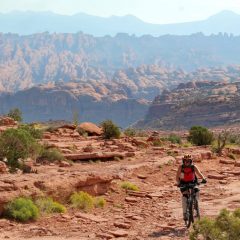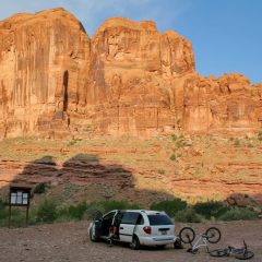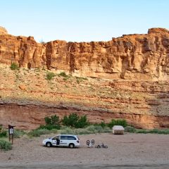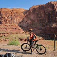 9h. Après quelques kilomètres en rive gauche du Colorado, en aval de Moab, nous démarrons depuis le parking aménagé, seuls une fois de plus, excepté un autre vététiste déposé par un pote et qui part rapidement devant nous.