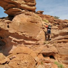 Parvenus sur le plateau, on débouche sur le Jackson Hole, un canyon avec une large butte circulaire au milieu. Un bon bout de passage exposé le suit, ce qui en devient presque banal dans le coin.