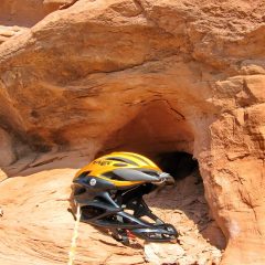 Les falaises des gorges sont baignées de soleil et laissent entrevoir des milliers de formes, jeux de lumières et de dessins étranges. Le parking accueille maintenant plusieurs 4×4 et pickups bardés d’autocollants MTB et de systèmes porte-vélos sophistiqués.