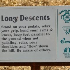 Rustler’s Loop est l’exemple type de ce qu’il est possible de faire avec un peu de volonté pour faire plaisir à la fois aux tous débutants et aux confirmés. Une boucle courte aux chiffres ridicules en apparence : 6 km pour +150m, et pourtant c’est l’éclate totale, idéale pour le warm-up de la matinée, avec une première vue sur le Colorado qui annonce la couleur. Des panneaux sont répartis le long de sentier pour à la fois enseigner les bases du pilotage à vtt, éduquer sur les droits et devoirs du vététiste, ainsi que sur la faune et la flore environnante. Le maître mot, décliné ici à toutes les sauces, est le fondement de l’éthique du trail aux alentours de Fruita : « Keep Singletrack Single… », le sujet d’un futur billet.