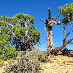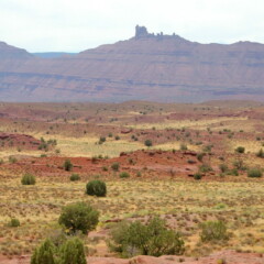 Bon j’exagère, les trois kilomètres de piste sont vite torchés, et le sentier montant nous rapproche à nouveau de Bookcliffs dans une prairie à l’herbe haute et blonde parsemée de petits arbres résineux et de massifs de fleurs endémiques du coin. Avec la pureté du ciel et le rouge des collines, le tableau est magnifique.
