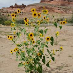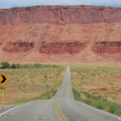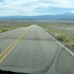 Puis la grande étendue à nouveau pendant environ 7 km, sur une piste tôle ondulée, parfois bordées de fleurs de tournesol, avec les fameux Bookcliffs qui sortent peu à peu de l’horizon dans la lumière matinale.