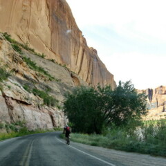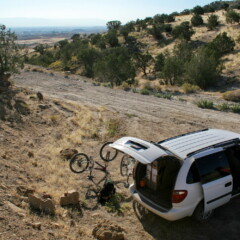 Retour à la voiture après quelques derniers whoops. Nous y retrouvons nos voisins de camping, un jeune couple de New Mexico qui passe ses vacances tous les ans entre Moab et Fruita, alternant VTT et vélo de route. Quant à nous, on décide d’en rester là aujourd’hui malgré l’envie qui nous tenaille de parcourir Kessel Run, sorte de slalom parfait agrémentés de jumps et de fast turns.