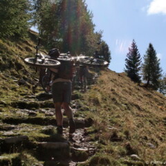 Annoncé à +1600m pour 40km, il fallait évidemment compter les taxes en sus, soit +1930m ce qui fait péter une fois de plus le niveau moyen+ 😛 pour les 8 bikers du jour (Charlotte, Banana, Lolotte, Franco, Laurent, Zeasyrider, JJ et Bourriquet).
