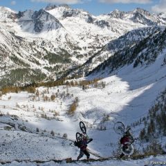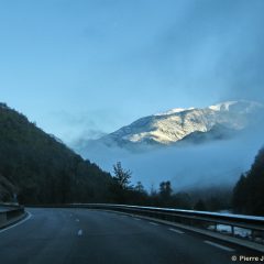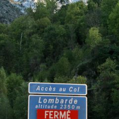 Chute effective du thermomètre au lever, mais le ciel est limpide. Shorts rapidement associés aux collants d’hiver et sur-couche obligatoire. Au rendez-vous, Charlotte toujours méfiante, insiste pour qu’on se renseigne sur l’état des routes. Bon, le saupoudrage a sans doute duré plus longtemps que prévu, tous les cols sont fermés et les équipements « recommandés » pour la montée d’Isola 2000 😯 . C’est donc out pour le col de la Lombarde d’où nous comptions partir.