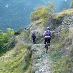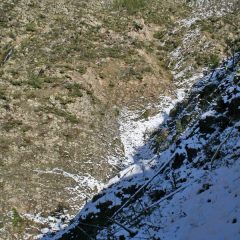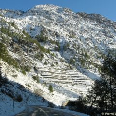 A 1400m la neige a enfin disparu et on peut se laisser glisser sur le long travers, avec parfois d’autres séquelles d’avalanches, jusqu’à la voie Romaine finale qui débouche au village d’Isola.
