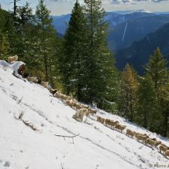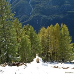 - Ah dame non, et ça continue encore plus bas sous les mélèzes, et puis attention aux patous, parce que les deux là, ils sont calmes, mais y’a un jeune qui fait pas de quartier lui, alors méfiez-vous !