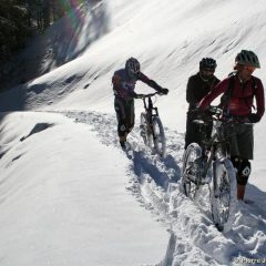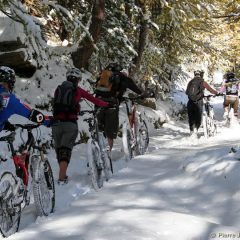 Finalement la journée aura été beaucoup plus longue et moins roulante que prévu. Un « plan débile » diraient certains 😉 mais les images mémorisées sont plus fortes que tout le reste, et à défaut d’or jaune, cette éphémère or blanc nous aura véritablement conquis, et personne n’a regretté cette atypique rando VTT.