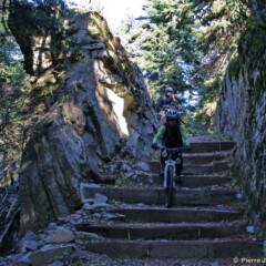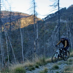 Reste cependant de petits joyaux tels que la descente du Moulinet (après la saignée du début) et son énorme tapis de feuilles qui laisse croire que l’on roule dégonflé, la descente de la hêtraie de Lucéram (après également une autre saignée), mon premier souvenir indélébile de vélo de montagne, et l’incontournable descente du Suquet, dont la première partie dans la forêt calcinée de Lucéram mériterait un commando à la tronçonneuse pour en dégager les nombreux troncs couchés en travers du chemin.