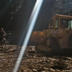 Certains passages ont bien changé, souvent du fait des coupes forestières et de leurs énormes saignées, droit dans la pente, qu’elles laissent derrière elles, avec le ruissellement des eaux pour terminer le travail… 😥 Ce qui fait tout de même pas mal relativiser de l’impact des VTT comparativement à ce type d’ exploitation parfois totalement déconnectée de la notion d’environnement durable.