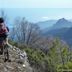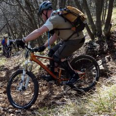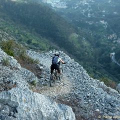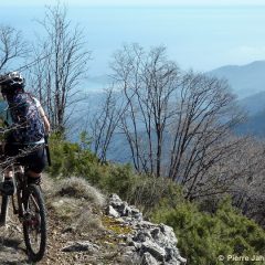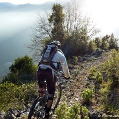 C’est déjà l’heure du picnic cul dans l’herbe, et on enchaine avec une descente sublime, comme on en trouve si souvent dans la Bévéra, jusqu’au-dessus de Sospel, où nous rattrapons la longue piste de la baisse de Scuvion, et ses +800m qui ne laissent quasiment aucun répit au 22-32.