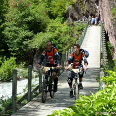 Les passages exposés en balcon avaient été largement évoqués au briefing, et autant que possible signalés, notamment dans les virages « ouverts » sur le vide. Pourtant Banana a vécu une belle frayeur en entendant un poursuivant rater un freinage juste derrière elle et faire le plongeon ! Par miracle, il avait pu se raccrocher à des buissons quelques mètres plus bas, tandis que Susie essayait tant bien que mal d’arrêter un concurrent pour avoir un coup de main et aider l’infortuné à sortir de sa position avec son vélo… Comme bien souvent dans ces compétitions, le chrono prend trop de place dans la tête, et certains en oublient les notions élémentaires d’entraide et d’assistance. Carton jaune sur ce coup.