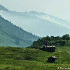 Certains apprécient les ciels purs, nettoyés de toute forme de nébulosité, ceux-là même qui transforment subitement les cliqueurs d’APN bas de gamme en photographes semi-pros. Pour ma part je vibre surtout dans les atmosphères changeantes, avec ces nuages qui promènent leurs ombres passagères et leur contrastes de lumières au gré des vents et des reliefs, quand ce n’est pas la brume qui monte de la vallée et qui change toute la mise en scène, pour mettre en avant tel ou tel versant. Tu photographies trois fois le même paysage à dix minutes d’intervalle et tu obtiens trois rendus complètement différents. Comme en Bretagne quoi.