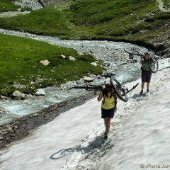 Adulé par certains, détesté par d’autres, on peut dire que la pratique systématique, ou à fort pourcentage, du « porté de biclou en terrain hostile » est très diversement appréciée. Le topo en prévoyait une bonne dose, et elle y était pour sûr.