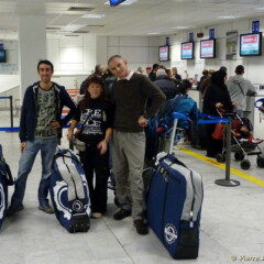 On a l’impression de sentir l’euro frais de très loin ! Pas évident de décliner poliment avec nos deux caddies chargés à bloc, alors que notre guide ne semble pas être au rendez-vous, très retardé il est vrai. Grand moment de solitude alors que l’aéroport se déserte progressivement, excepté la faune locale qui cherche encore et toujours à caser son commerce en voyant notre air un peu inquiet. Deux appels en France pour finalement avoir confirmation de l’arrivée imminente de notre guide (comme on est très malins, on a même pas son téléphone sur nous !).
