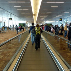 Arrivée Dubai à 23h35 locale. On repart à 4h40 pour Delhi, soit 5 heures à tuer la nuit dans l’énorme plaque tournante de l’émirat, où se côtoient femmes en burka, businessmen en costard, émirs en turban, et touristes en sandales de tous horizons, le tout au milieu d’une débauche d’éclairage, de mobilier tape à l’oeil, et de boutiques de luxe duty free souvent plus chères que dans nos magasins. Un peu de sommeil volé sur ces sortes de banquettes inclinées finalement peu confortables, au milieu des voiturettes électriques qui klaxonnent à toutes heures de la nuit sous les rampes d’halogènes froides.