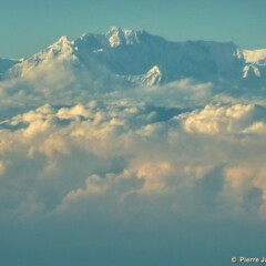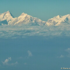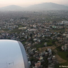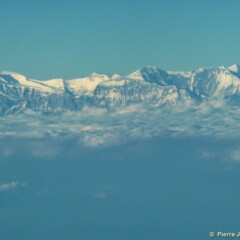 Le troisième et dernier vol vers le Népal nous permet d’apercevoir progressivement la chaine de l’Himalaya qui dépasse des nuages depuis très très loin. Une autre planète sort de l’horizon. C’est vraiment fascinant !