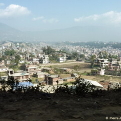 On arrive finalement à Katmandou au coucher du soleil, au milieu de l’épaisse couche de pollution qui plombe la ville. Une fois passée la longue queue pour le visa touriste de 15 jours, dans la lumière blafarde du groupe électrogène de l’aéroport (il y a de nombreuses coupures de courant le soir), il fait nuit. On sort quasiment dans le noir, assailli par un nuage de Népalais qui nous proposent dans un anglais très approximatif taxi, hôtel, et plus si besoin…