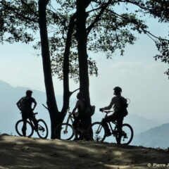 Et pourquoi en VTT ? Disons que c’est un prétexte 😉 Pour l’instant, ni Susie ni moi imaginons aller visiter un pays en bus ou en groupe, guide du routard à la main et APN en bandoulière. Manque un truc. Avec ses chevilles en chamallow, la marche à pieds n’est pas son fort. Il reste donc nos biclous de montagne, et le plaisir qui les accompagne. Le vélo permet aussi d’aborder des parcours plus ambitieux que ceux que nous pourrions couvrir à pieds, tant qu’il y a un peu de roulant évidemment, et il reste un passeport universel pour aborder les locaux, les enfants en sont fous !