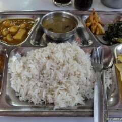 Après un déjeuner succulent et parfaitement en accord avec la tradition, le dal bhat, plat traditionnel Népalais à base de riz et de soupe de lentilles, dans un cadre idyllique à proximité du temple, nous terminons la montée vers celui-ci par quelques escaliers au milieu d’une foule de plus en plus dense.