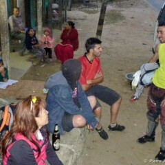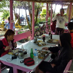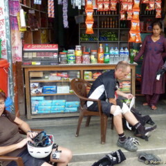 En attendant, les habitants du coin qui font bar-épicerie nous servent les fameuses Tuborg 66cl désormais incontournables, et toutes sortes de chips pour un apéro royal, au milieu des poules, et des enfants de retour de l’école qui font leurs devoirs dehors à la lueur faiblarde des néons.