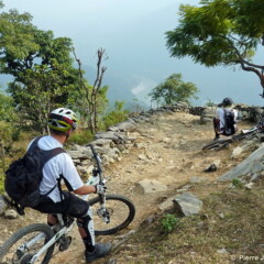 Nous allons parcourir dans la journée deux secteurs sur deux collines différentes, avec le privilège de pouvoir repasser deux fois dans nos traces, pour un plus grand plaisir et un pilotage libéré. Durant ces sept dernières années, Tangi a exploré et exploité les moindres sentes des environs pour nous en proposer la crème. Inutile de préciser que les nombreux treks VTT qui fleurissent au Népal n’y poseront sans doute jamais leurs roues !