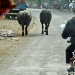 Il y a des villages partout. La route les traverse en donnant parfois l’impression de pénétrer les petites maisons et commerces faits de tout et de rien, tant ceux-ci sont proches et ouverts sur la voie. Et on imagine facilement ce que leurs occupants doivent respirer tous les jours.