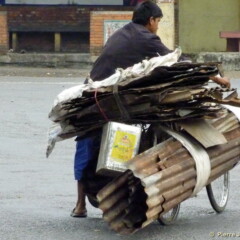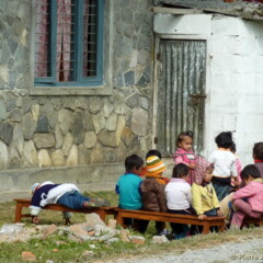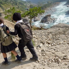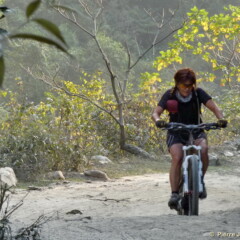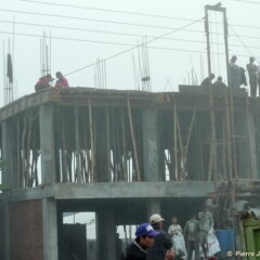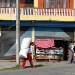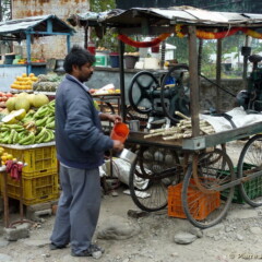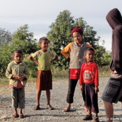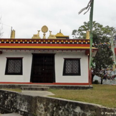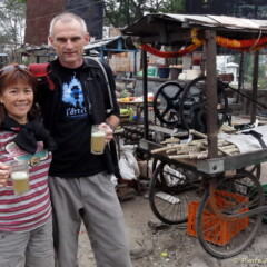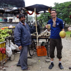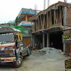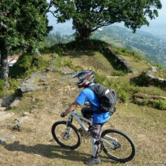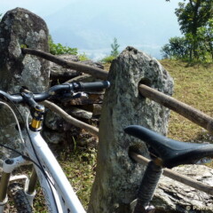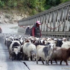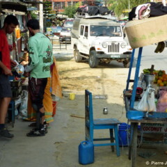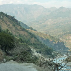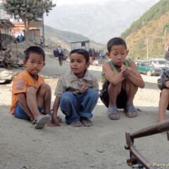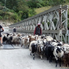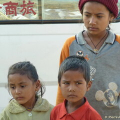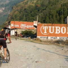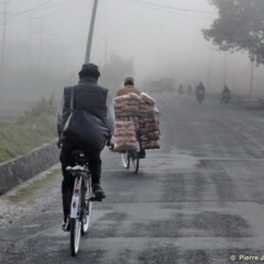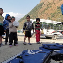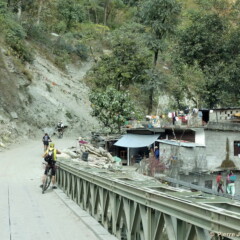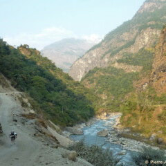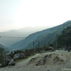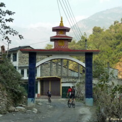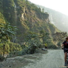 Un peu pressés par le temps, nous remontons les vélos devant une gargote choisie au hasard, dans la poussière, les détritus et les eaux usées, sous le regard étonné des enfants et autres locaux. Une noddle soup super épicée avalée sur un coin de table, en moins d’une heure nous sommes opérationnels et entamons notre lente remontée, tandis que Laxman notre sherpa nous suivra en bus avec nos sacs.