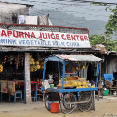 Tandis que les garçons se refont un dernier ride en fin de journée, nous préférons profiter avec Banana d’un peu de détente off bike et downtown, dans la douceur de vivre de Pokhara, avant de démonter les vélos pour le vol prévu demain matin vers Jomsom, et de terminer par un autre repas indien.