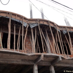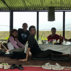 Pas mécontents d’être à nouveau sur le vélo, avec 20 km de piste à parcourir pour environ 500 m positifs. En cette fin d’après-midi le trafic n’est heureusement pas trop dense, et on ne respire pas encore des kilos de poussière immédiatement soulevés lorsqu’un bus ou un camion surchargé nous croise. Et on a beau globalement monter, la vitesse des véhicules motorisés est à peine plus élevée que la notre, alors qu’à la moindre descente, nous sommes les plus rapides !