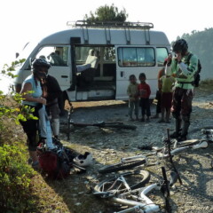 Tangi s’adapte à la vitesse de l’éclair à la nouvelle situation et organise une nouvelle réservation du van pour nous conduire à Beni, d’où nous poursuivrons à vélo. Le van ne continuera pas au-delà, car il n’est pas adapté à la difficulté du terrain. L’état de la piste qui monte vers Jomsom, parfois exposée, parfois défoncée, est très aléatoire, en plus d’être relativement risquée.