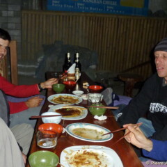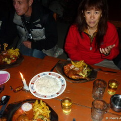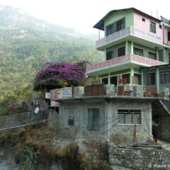 La question du soir : aurons-nous besoin de la frontale pour atteindre Tatopani ? Finalement non. Alors que le crépuscule et la patience de Banana sont tous deux bien entamés, nous entrons enfin dans le village et le Trekker’s lodge pour une excellente soirée de détente, dans un air encore assez doux, avec douche chaude, baignade nocturne dans les sources chaudes pour Florent et Astérism, diner copieux et gouteux aux chandelles (coupures de courant), avec une excellente nuit de récupération.