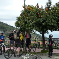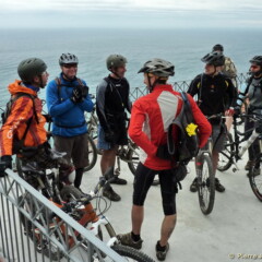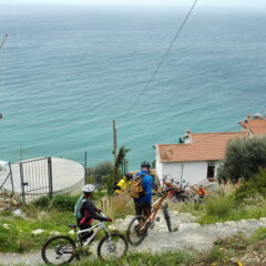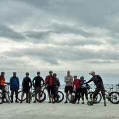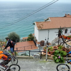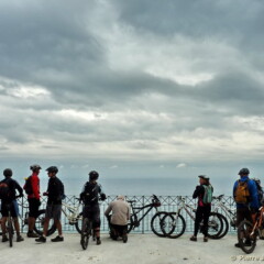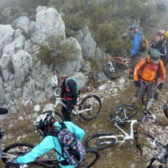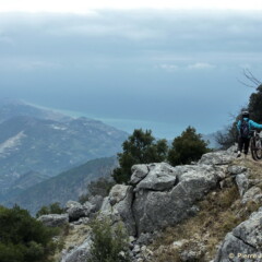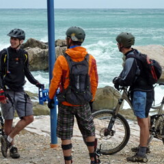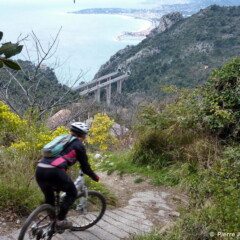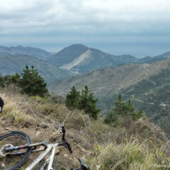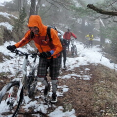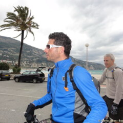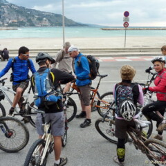 Ajouté à cela l’excellente ambiance des dix courageux, dont trois filles, de l’ASCVTT, les paysages de la plongée sur Menton qui restent magiques quelque soit le temps, les restes de neige aux abords du sommet, les passages parfois très techniques de la descente sur la crête, la descente ludique en ville qui ne semble pas vouloir s’arrêter, l’odeur de l’iode si caractéristique des coups de vent d’Est, et la pluie qui a bien voulu attendre que nous soyons attablés au bar pour se déchainer.
