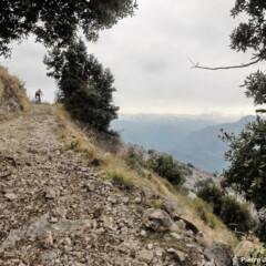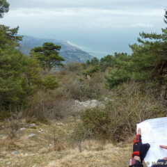 Si l’on regrette l’absence de paysage à 360° au sommet de ce mont frontalier peu pratiqué, et dont nous ne ferons même pas la courte ascension pédestre pour cause de brume et de vent violent, la difficulté continue de la montée associée au froid humide en altitude aura été largement compensée par la qualité et la variété de la descente sans interruption jusqu’à la mer.