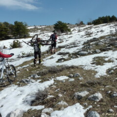 Un parcours recouvrant la plupart des spéciales des Calades de Napoléon, le rallye de St Vallier en 2009, mais avec une montée du Thiey par Canaux et la face nord, objet d’un portage viril de 300m, de la neige parfois jusqu’au genou.