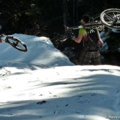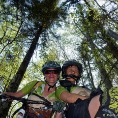- Dès le début de la montée, Laurent « I believe I can fly« , a testé la vingtaine de mètres positifs gagnés sur la route en posant le pied dans le mur qui la surplombe ! Merci aux arbres qui ne l’ont pas laissé glisser jusqu’au bitume 😯