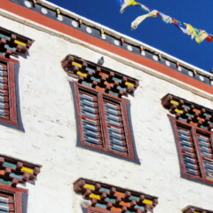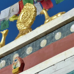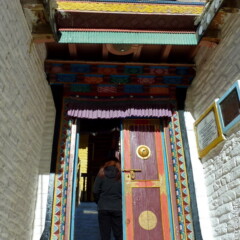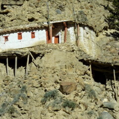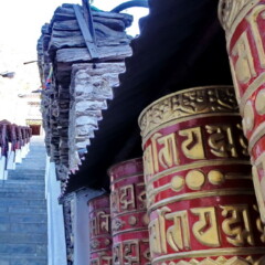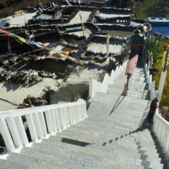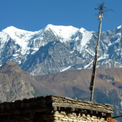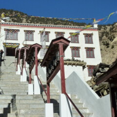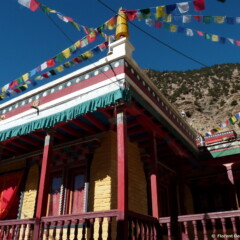 Le temple est magnifique, et offre un haut point de vue sur la ville idéal, ses maisons de pierres sèches sans mortier, ses toits garnis de rangées de bois de chauffage, et de mais en cours de séchage, ses champs cultivés, ses innombrables pommiers, et la rivière Kali Gandaki qui serpente au fond de la vallée, tandis que dans la salle de prières se déroule une cérémonie à laquelle participe la quasi totalité du village.