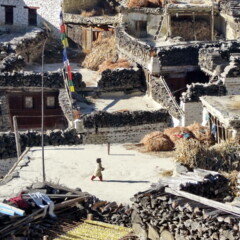 A l’origine, ces stères de bois de chauffage étaient stockées sur les toits plats des maisons pour se chauffer à la saison froide, puis, sont devenues une décoration, mais surtout un signe de santé pour ses habitants. Et maintenant que la plupart d’entre eux descendent vivre autour de la douce Pokhara durant la saison froide, personne ne touche plus désormais à ces murailles de bois coupé, parfois centenaire.