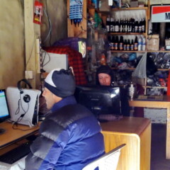 Au retour, on trouve Tangi et Florent dans ce qui ressemble à une cave sombre, sorte de micro épicerie, attablés devant deux ordinateurs récents : le cyber-café de la ville est complet !