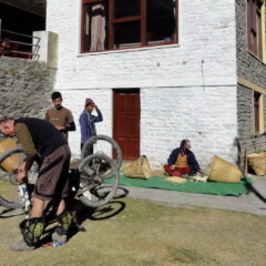 Tout s’accélère le lendemain pour procéder au démontage complet et rangement soigné des vélos dans leurs sacs respectifs, préparation et optimisation des sacs, et adieux rapides avec nos hôtes, Florent qui reste une semaine supplémentaire, et notre meilleur guide breto-népalais entre tous : Tangi.