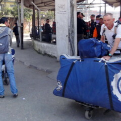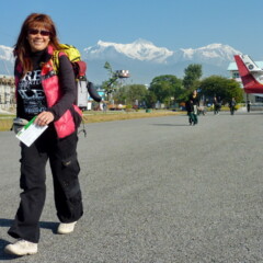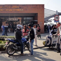Deux micro-taxis chargés à bloc avec nos trois sacs vélo, au milieu d’une manifestation dans les rues de Pokhara, heureusement le petit aéroport n’est vraiment pas loin.
