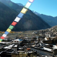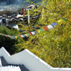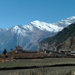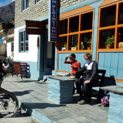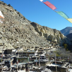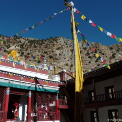 En ce 1er décembre 2010, après la « journée phare » de la veille, Tangi a judicieusement prévu un programme plus « frugal » pour entamer notre retour progressif vers la vallée. On a même droit – luxe suprême – à un bout de matinée « off » (comprendre « touristique » 😉 ) pour profiter de la ville typique de Marpha la belle et de son monastère bouddhiste, sans oublier la petite halte dans son vaste cyber-café 🙂