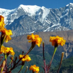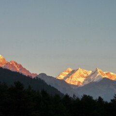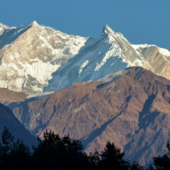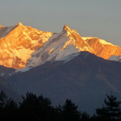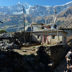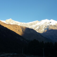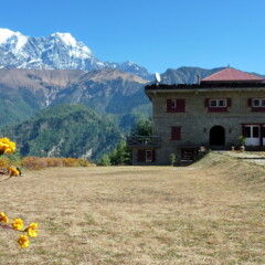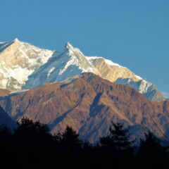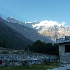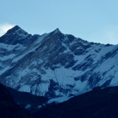 Et le soleil se couche déjà lorsque nous parvenons à Kalopani, et son très beau lodge confortable, idéalement placé entre la chaine des Annapurnas d’un côté et le Dhaulagiri de l’autre. Comble du luxe, Tangi nous a fait réserver la plus belle suite de la maison, spacieuse, avec salle de bain, et vue sur les deux 8000 !