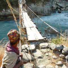 Le retour vers Beni alterne entre l’autoroute (la piste poussiéreuse et cassante du Mustang) et le sentier du tour des Himalayas, et ses traversées de villages et autres ponts himalayens. Il faut surtout tenir l’horaire pour arriver avant la nuit, alors on tape parfois des sprints sur ce parcours descendant, avec doublages sauvages de bus surchargés. On sent le but se rapprocher, la délivrance un peu aussi. Le trafic se fait plus dense, et le danger avec, ce qui impose une double concentration de rigueur.