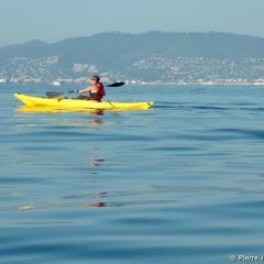 Deuxième expérience kayak de mer à nouveau pleinement réussie. Les bras tirent un peu après les 10 km de navigation, mais le plaisir est total !