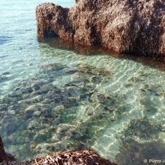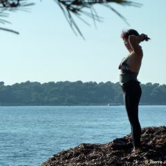 Par sauts de puce, au gré de notre curiosité, nous parcourons la côté sud de l’île, qui fait face à sa petite soeur Saint Honorat. D’énormes matelas de posidonies sont venus couvrir les rochers depuis la dernière tempête, ce qui rend l’accès aux micro-plages encore plus amusant.