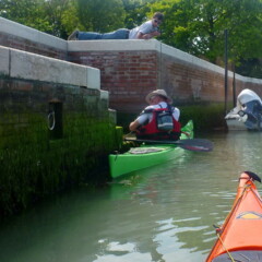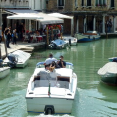 Le retour par le rio dei Vetrai nous gratifie à nouveau du privilège des navigants, glissant paisiblement sur l’eau, sous les ponts, à l’écart des touristes, tout en étant souvent photographiés par ces derniers, surpris d’observer de si frêles esquifs sur la lagune Vénitienne.